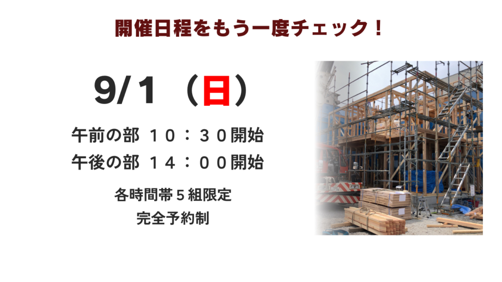 この見学会はオーナー様の建築中のお住まいを特別にお借りして行うイベントです。