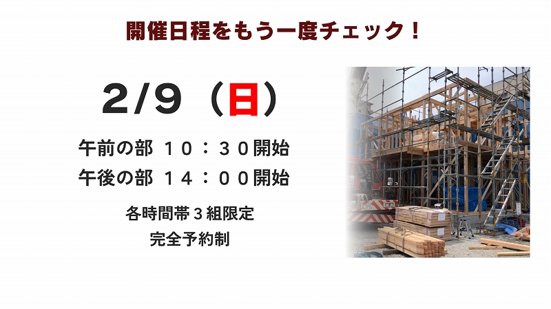 この見学会はオーナー様の建築中のお住まいを特別にお借りして行うイベントです。