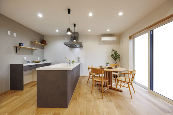 ブラックウォールナットに合わせ、ダークブラウンのキッチンをチョイス。