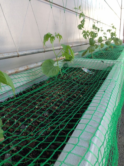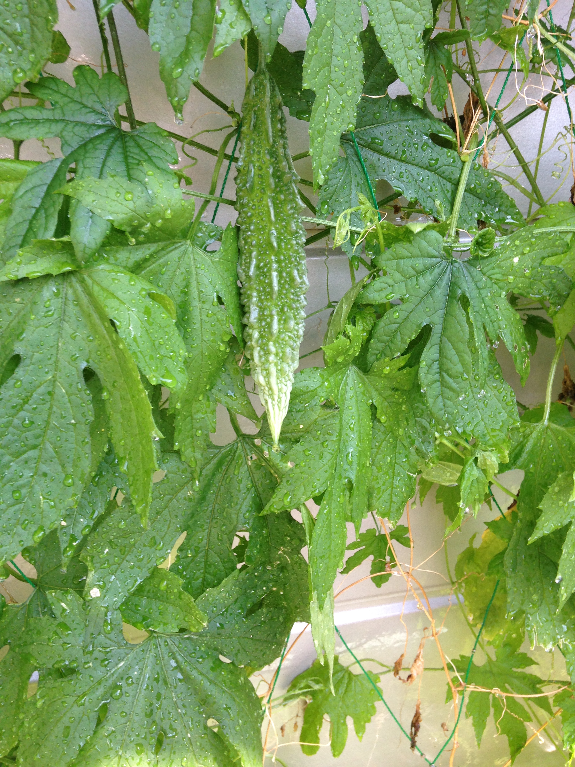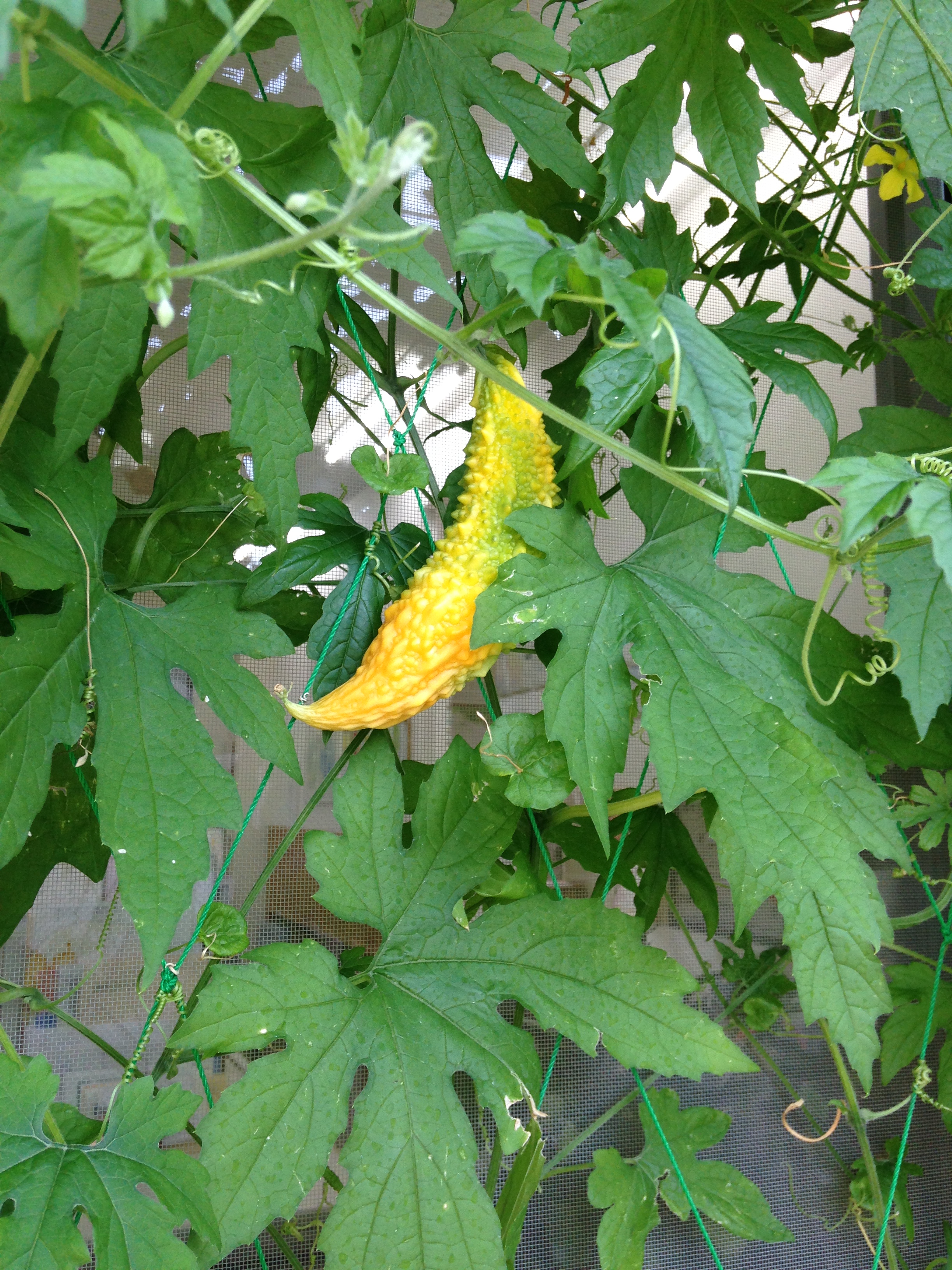 グリーンカーテンが茂って、ロールカーテンを下げなくなりました。