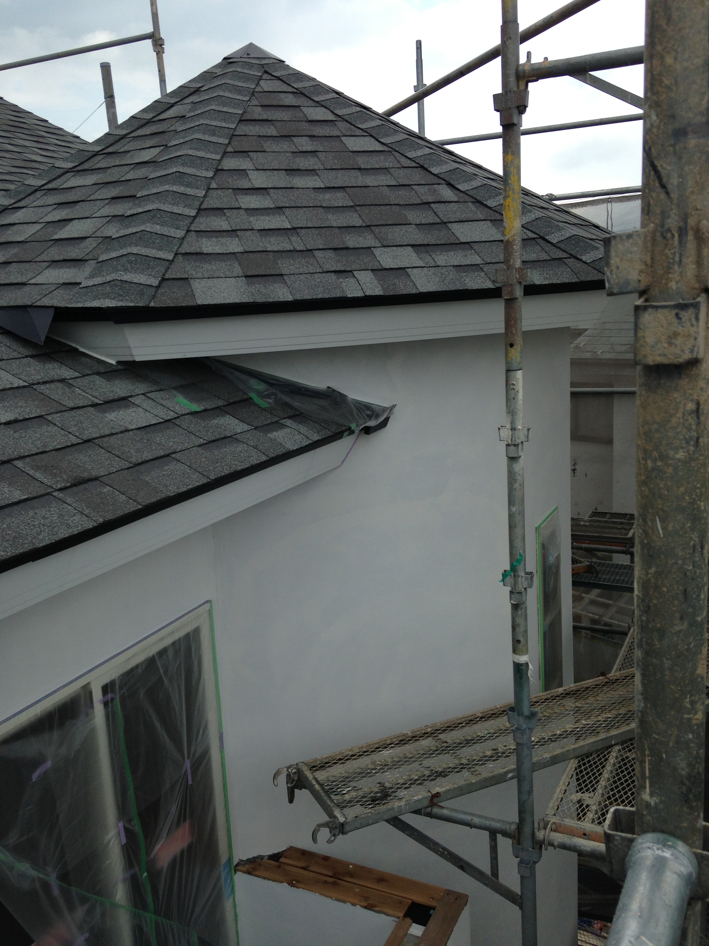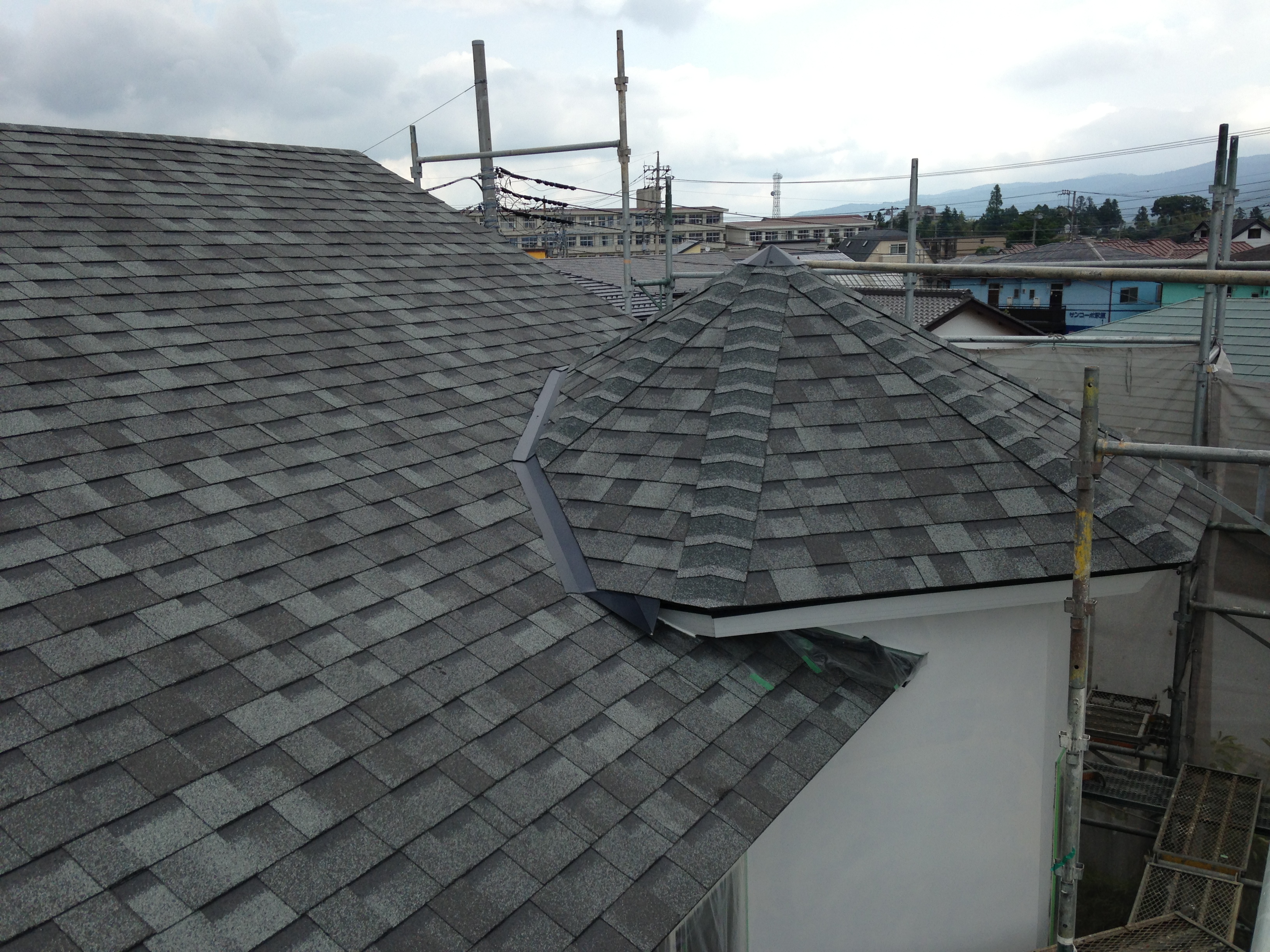 折れ曲がりの多い屋根には、柔らかい素材のシングル葺きは適しています。