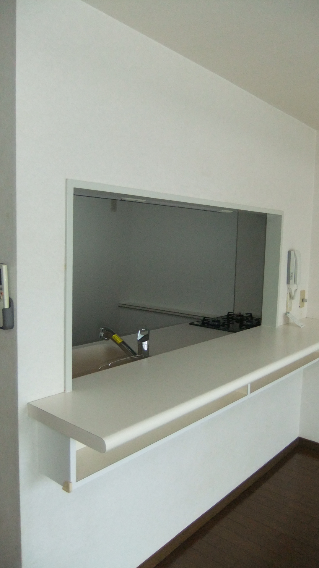 上はダイニング側からカウンターを通してキッチンを覗いたところです。