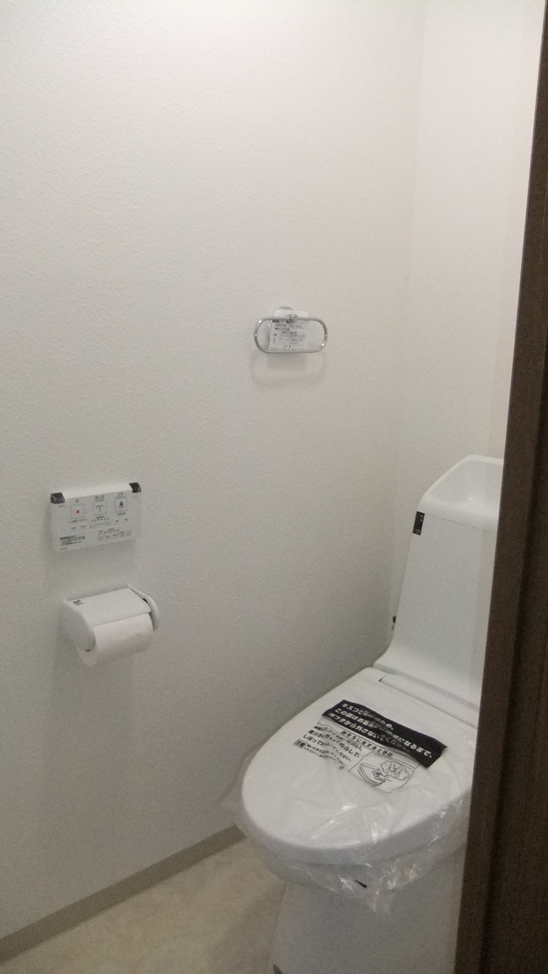 左の写真にはタオルリング、紙巻器とウオシュレットのリモコンが壁についています。