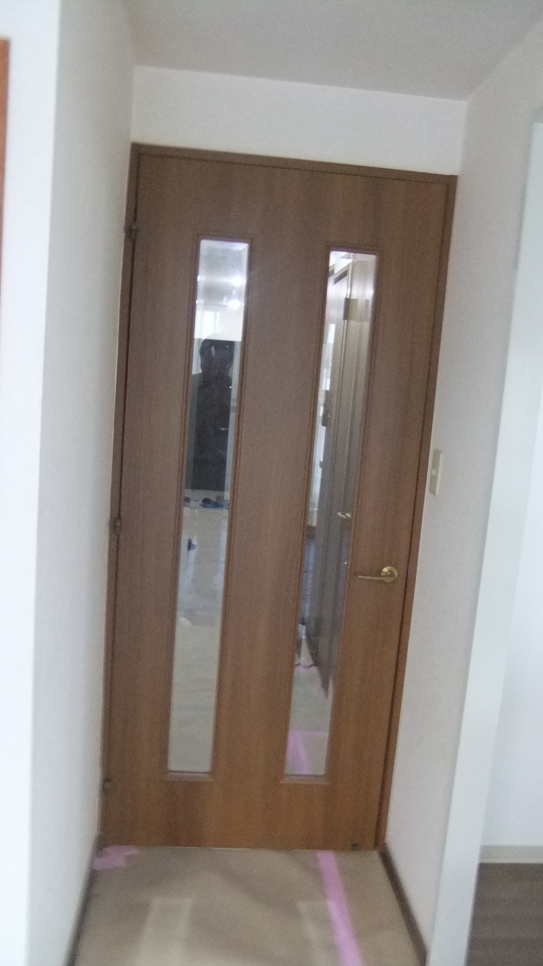 廊下からリビングへ入るところのガラスドアと収納折れ戸です。