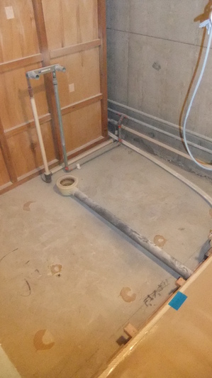ほぼ完成ですが写真の浴槽の手前に浴槽の前壁の取付が残っています。