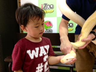 大きなニシキヘビを首に巻いて家族で記念撮影もしました。