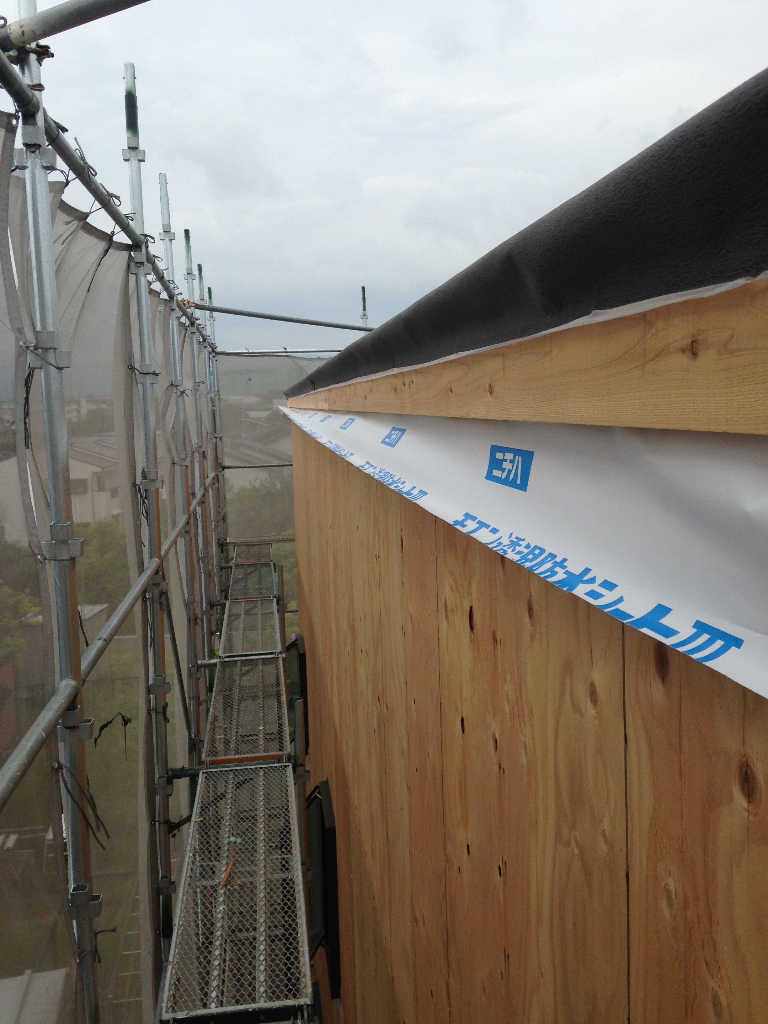 その下に外壁合板の上に貼る透湿防水シートを差込みます。