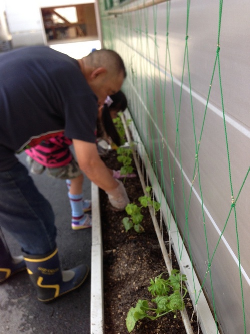 事務所の南側の窓外に緑のカーテンを作ろうと