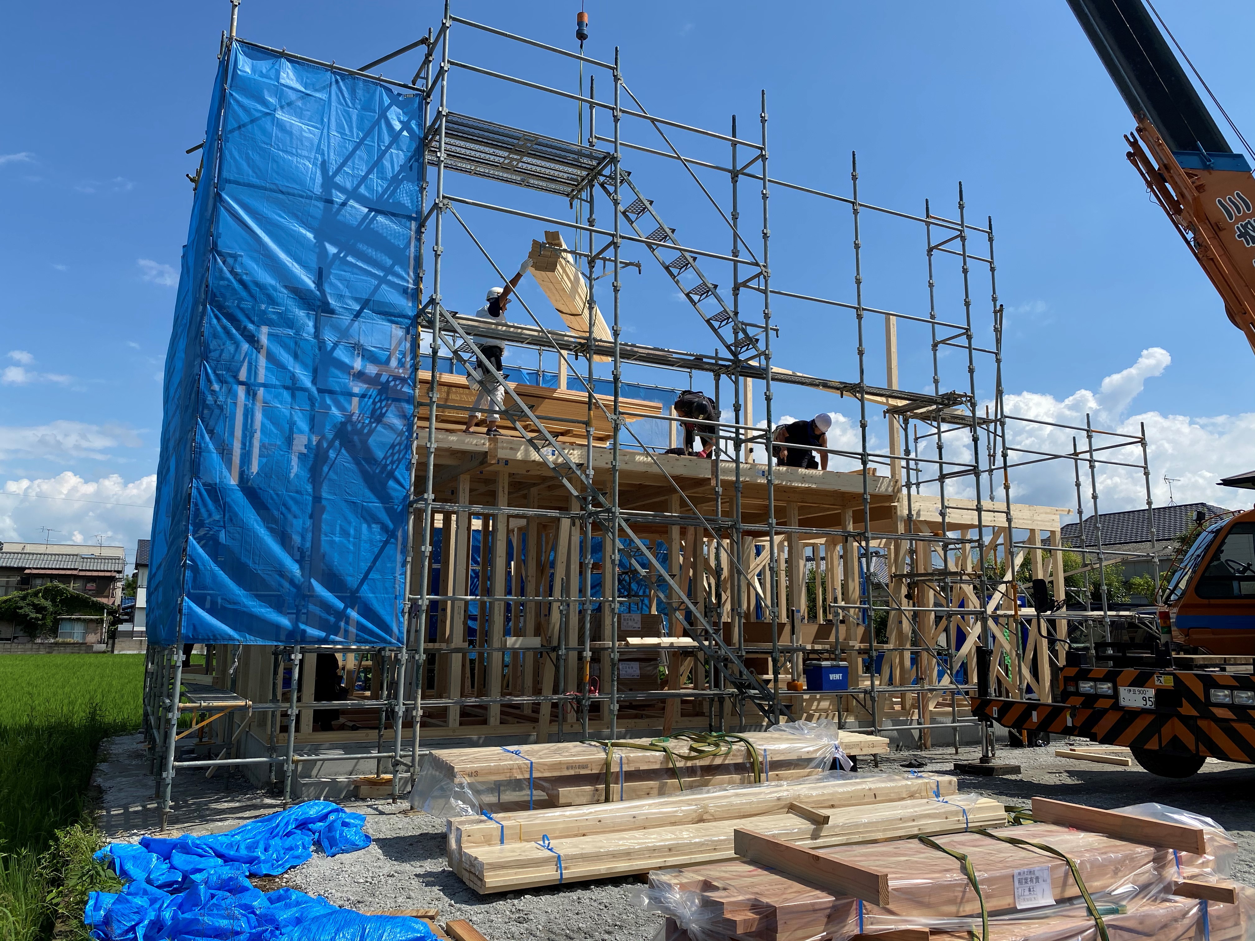 梅雨があけ、夏の日差しが照り付ける中上棟を迎えました。