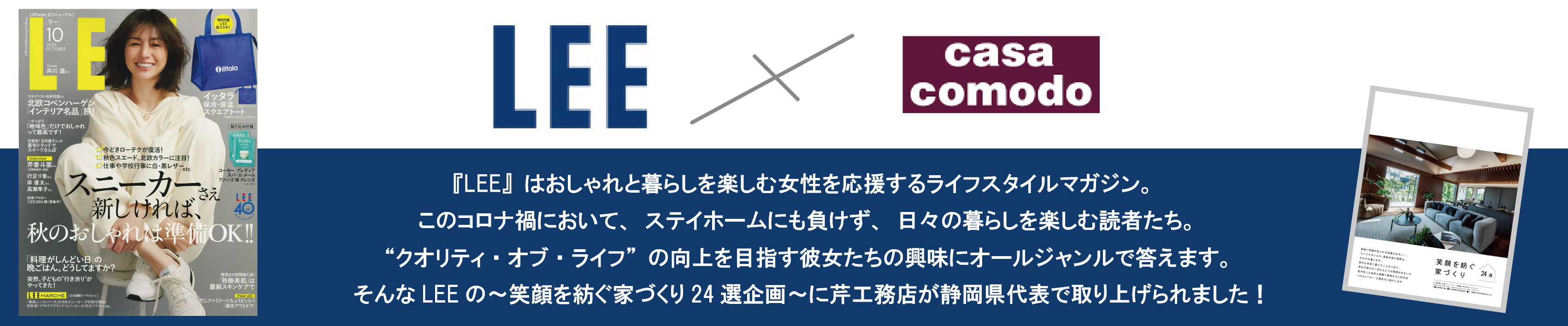 昨日発売の女性ライフスタイルマガジン「LEE」10月号「笑顔を紡ぐ家づくり24選」特集に、静岡県代表として弊社が掲載されました!